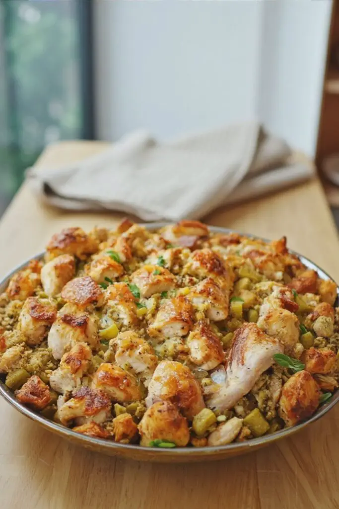 Inspired by the kind of soulful cooking that brings everyone to the table, this casserole combines tender shredded chicken, a rich and creamy sauce, and a savory, golden-brown stuffing topping. It’s the perfect “Sunday dinner” feel, ready any night of the week. Whether you’re feeding a hungry family or looking for a dish to bring to a potluck, this chicken stuffing casserole is guaranteed to be a crowd-pleaser.