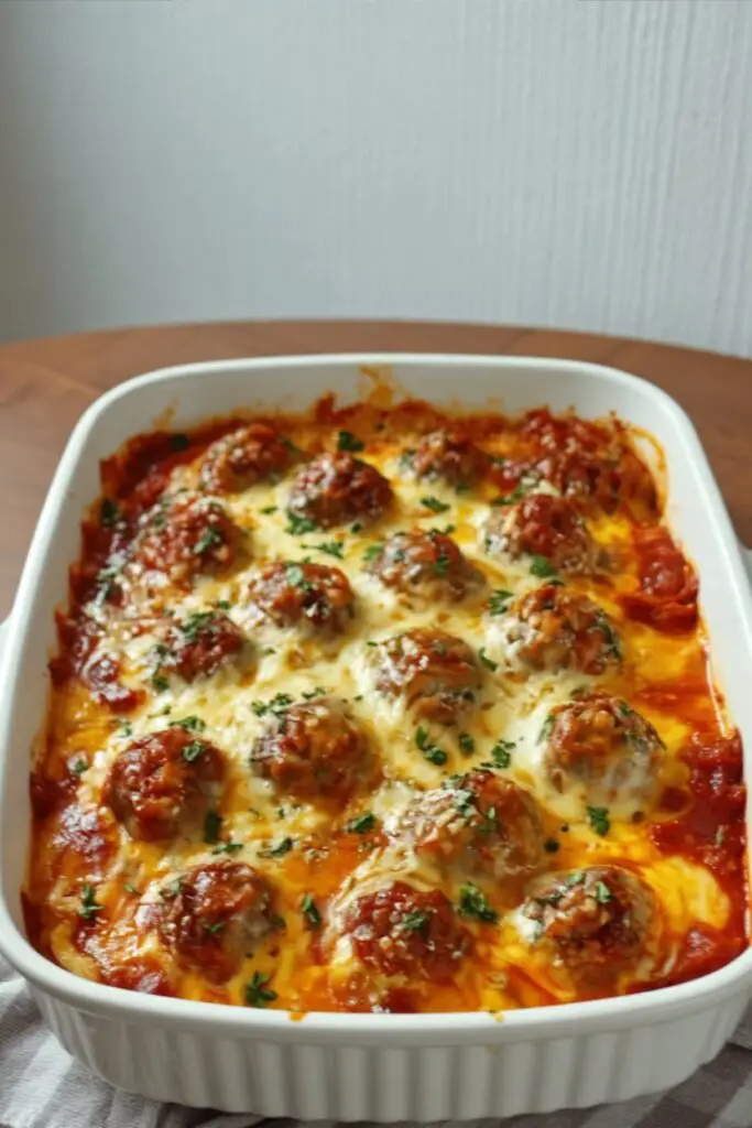 Why do we love it? Because it challenges the traditional belief that pasta dishes require boiling water separately, draining, simmering sauce, and then baking. This recipe is pure magic: raw pasta, frozen meatballs, and sauce go into the dish, and a bubbling, cheesy masterpiece comes out. It is the ultimate “set it and forget it” comfort food.