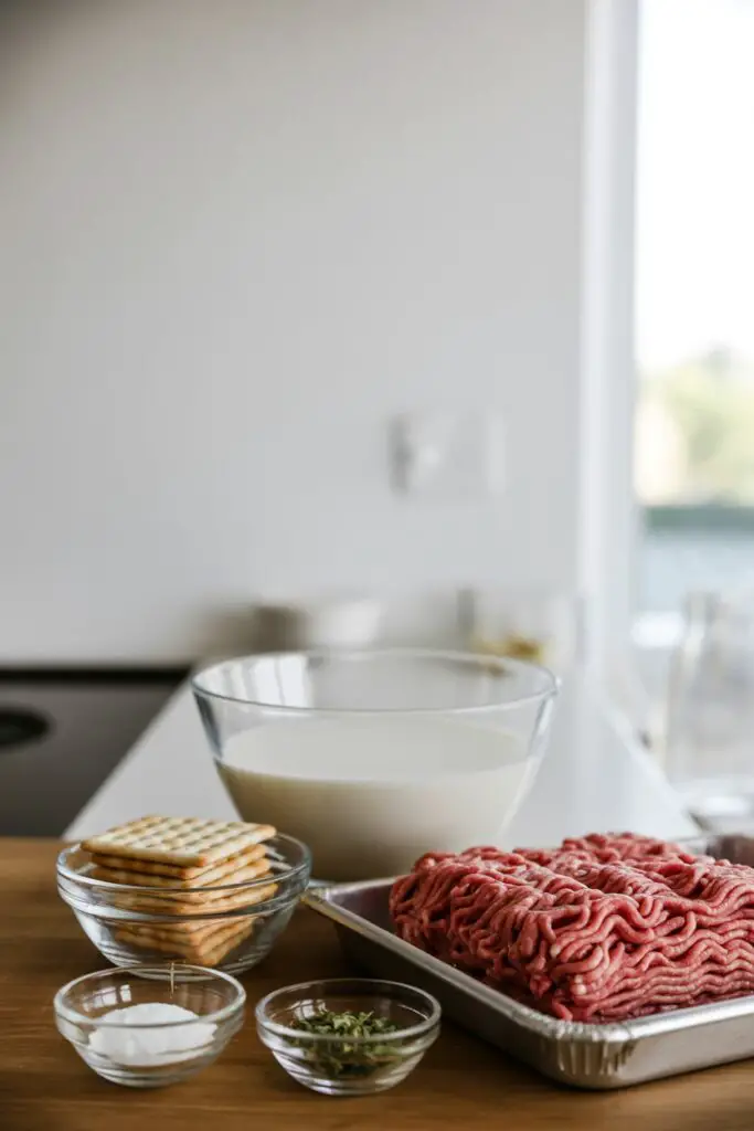 In a large mixing bowl, combine the ground beef, crumbled saltine crackers, 1 cup of milk, Italian herbs, onion powder, garlic powder, cayenne pepper (if using), salt, and pepper. Use your hands to mix until everything is evenly incorporated, but try not to overwork the meat, which can make it tough.
