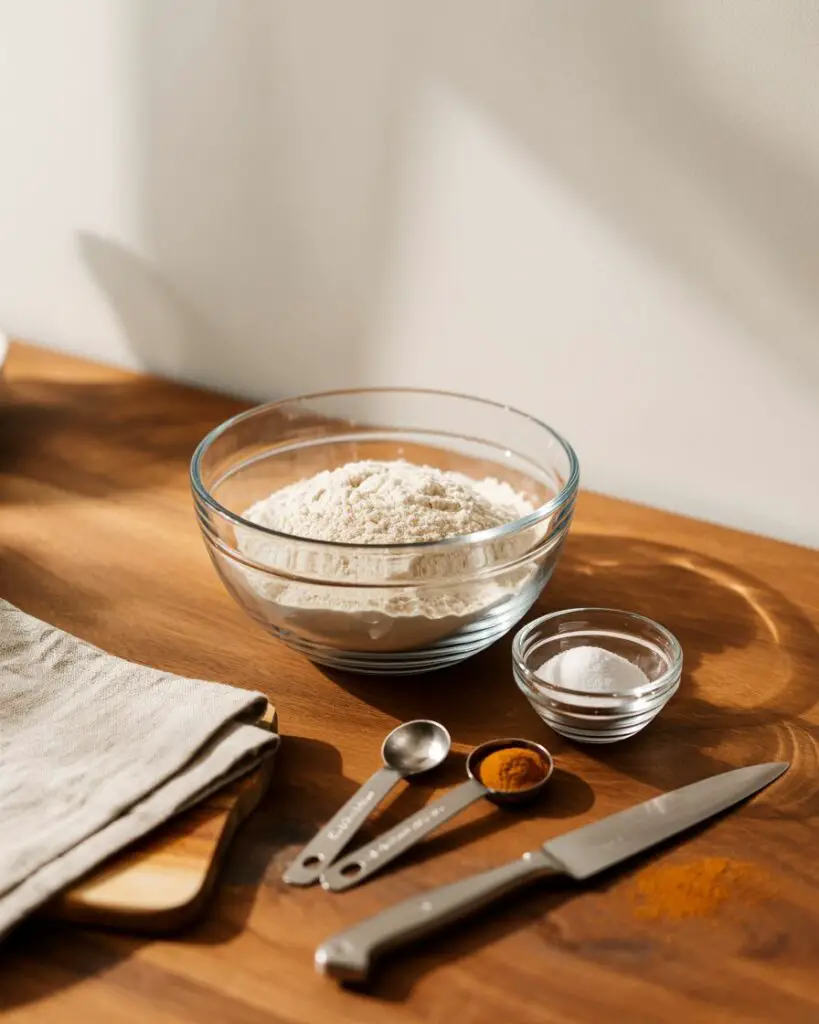 - Create the Cake Batter: To the same small bowl, add the all-purpose flour, baking powder, and ¼ tsp of apple pie spice. Mix gently with a fork until just combined. Do not overmix.