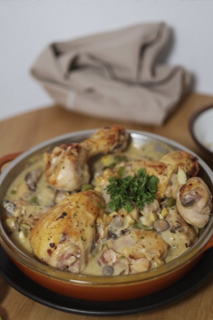 Follow these simple steps to create incredibly tender and flavorful baked chicken legs in a creamy mushroom sauce.