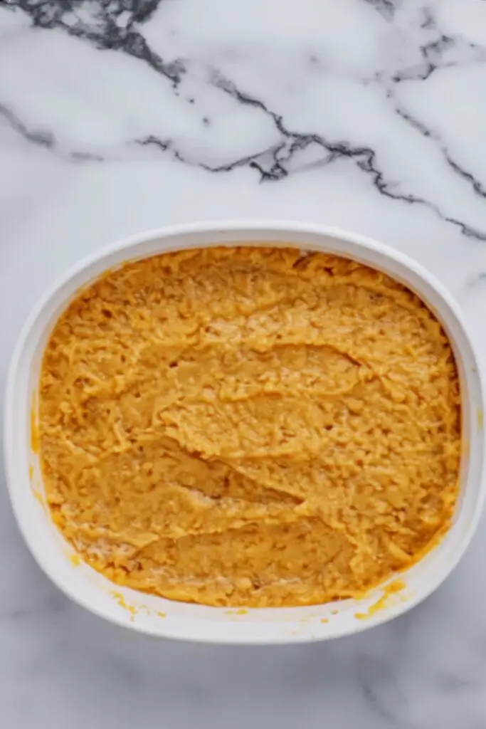 - Assemble and Bake: Pour the sweet potato mixture into your prepared baking dish and spread it into an even layer. Sprinkle the pecan topping evenly all over the sweet potato mixture.