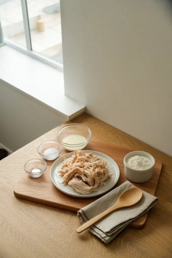 - 3 cups cooked chicken, shredded