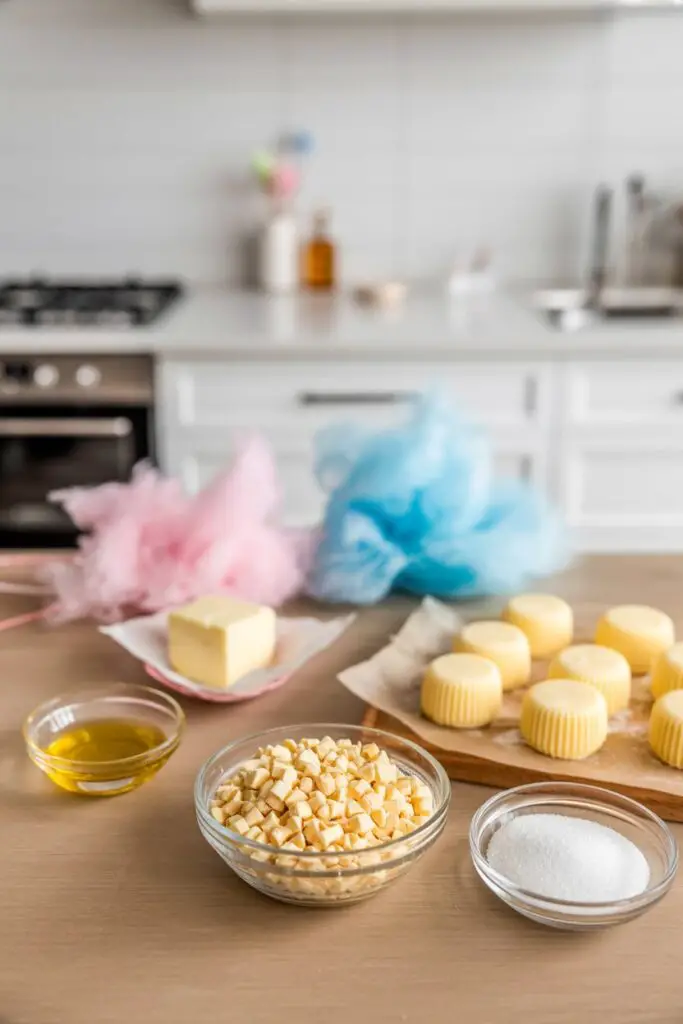 - 1–2 containers (2–3 oz total) Cotton candy, in pink and blue colors