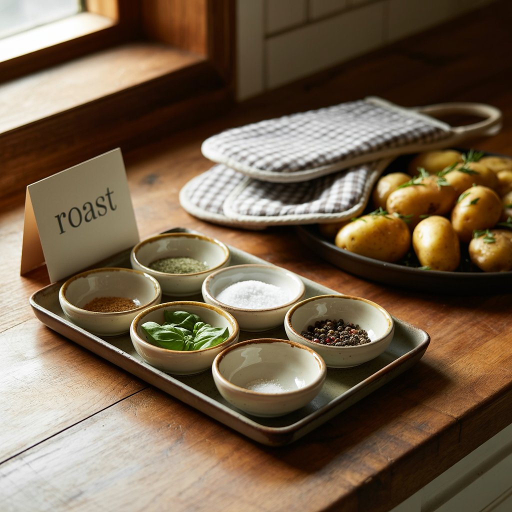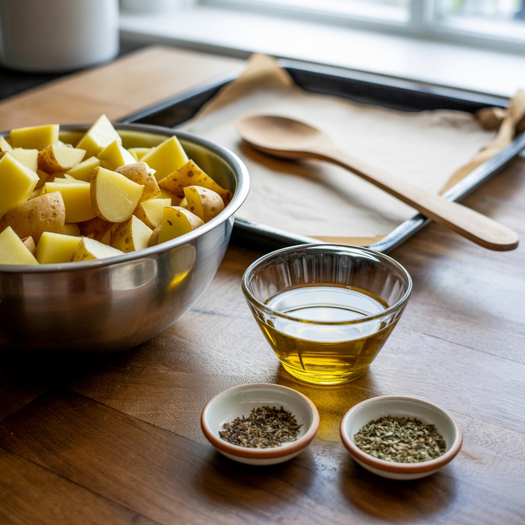 - Roast the herbed potatoes: Heat oven to 425°F (220°C). Toss cubed potatoes with olive oil, thyme, oregano, basil, salt, and pepper. Spread on a baking sheet in a single layer and roast 25–30 minutes, flipping halfway, until crisp outside and tender inside.