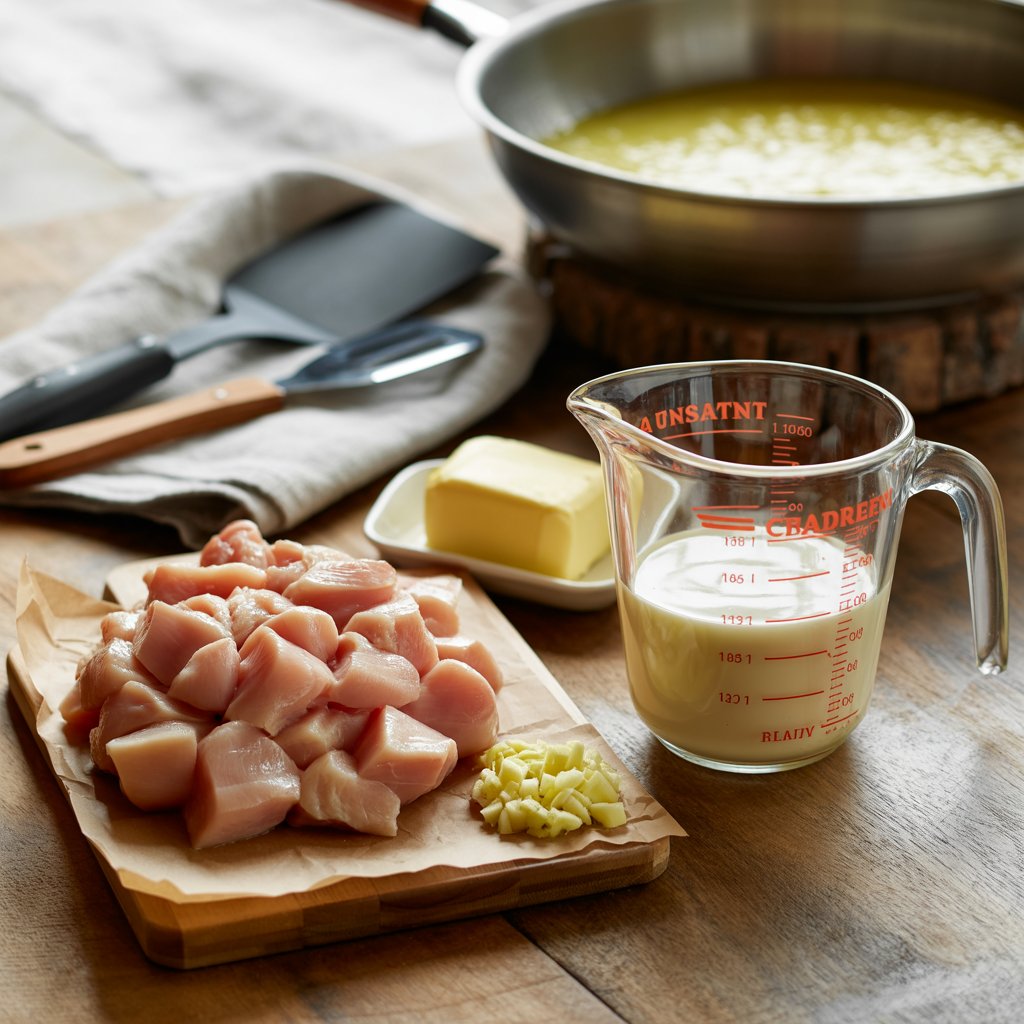| For the Creamy Garlic Chicken | Boneless, skinless chicken breast, cubed | 1 ½ lbs |