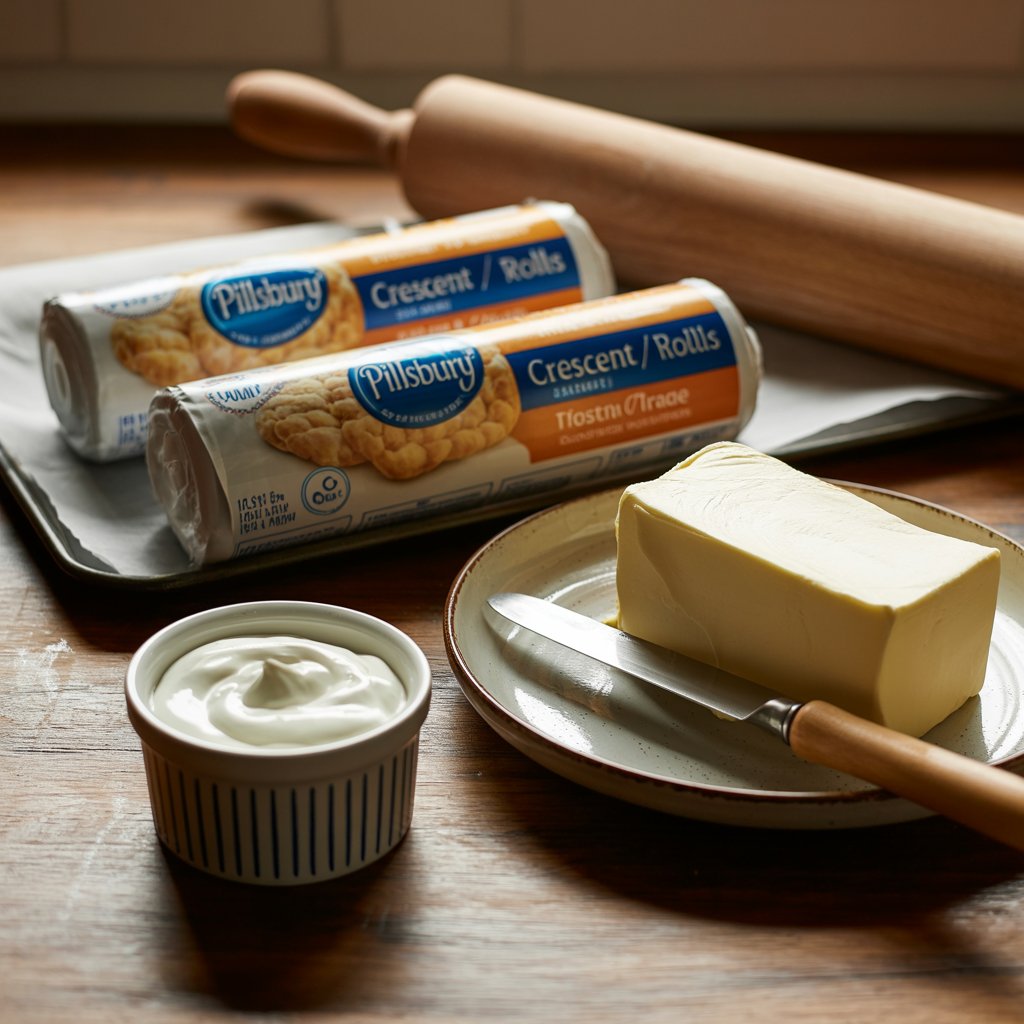 - 2 8 oz cans Refrigerated crescent dough sheets (Or 2 cans original crescent rolls; seal perforations)