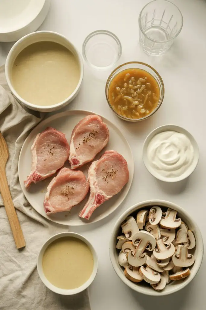 Layer Ingredients: Place the pork chops in a single layer at the bottom of your slow cooker. Pour the prepared soup mixture evenly over the pork chops. Scatter the sliced mushrooms over the sauce.