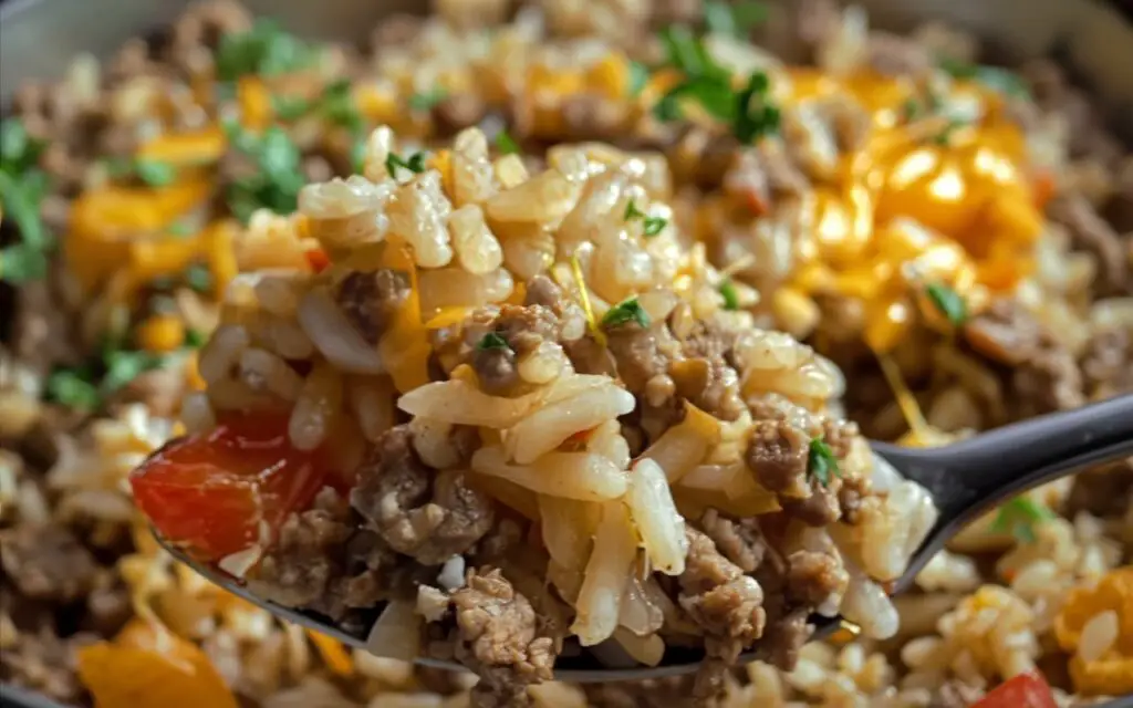 - Add Vegetables: Boost the nutrition by adding a layer of drained canned corn, peas, or mixed vegetables on top of the ground beef before adding the rice. You could also stir in sautéed mushrooms or bell peppers with the cooked beef.