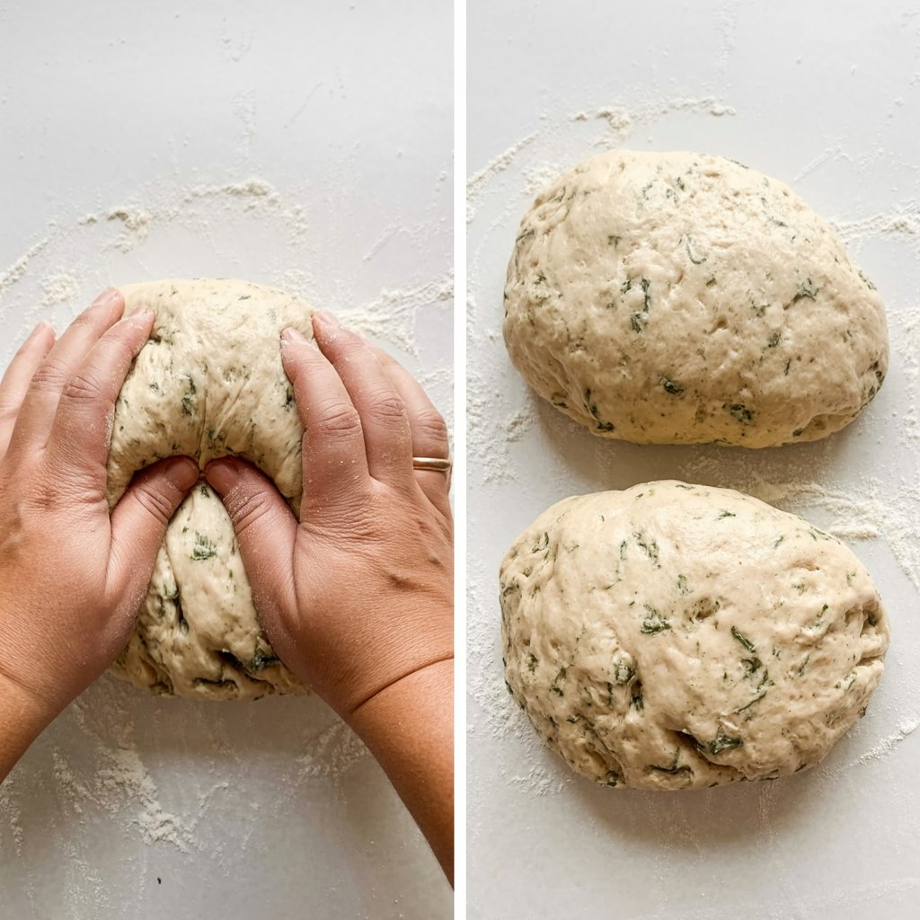 - Turn dough onto a lightly floured surface; knead 1–2 minutes until cohesive and not sticky.