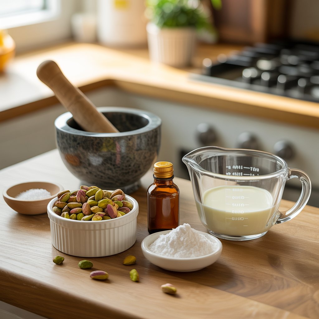 | Pure Vanilla Extract | 1 teaspoon | Enhances the natural sweetness and nutty flavour of the pistachios. |