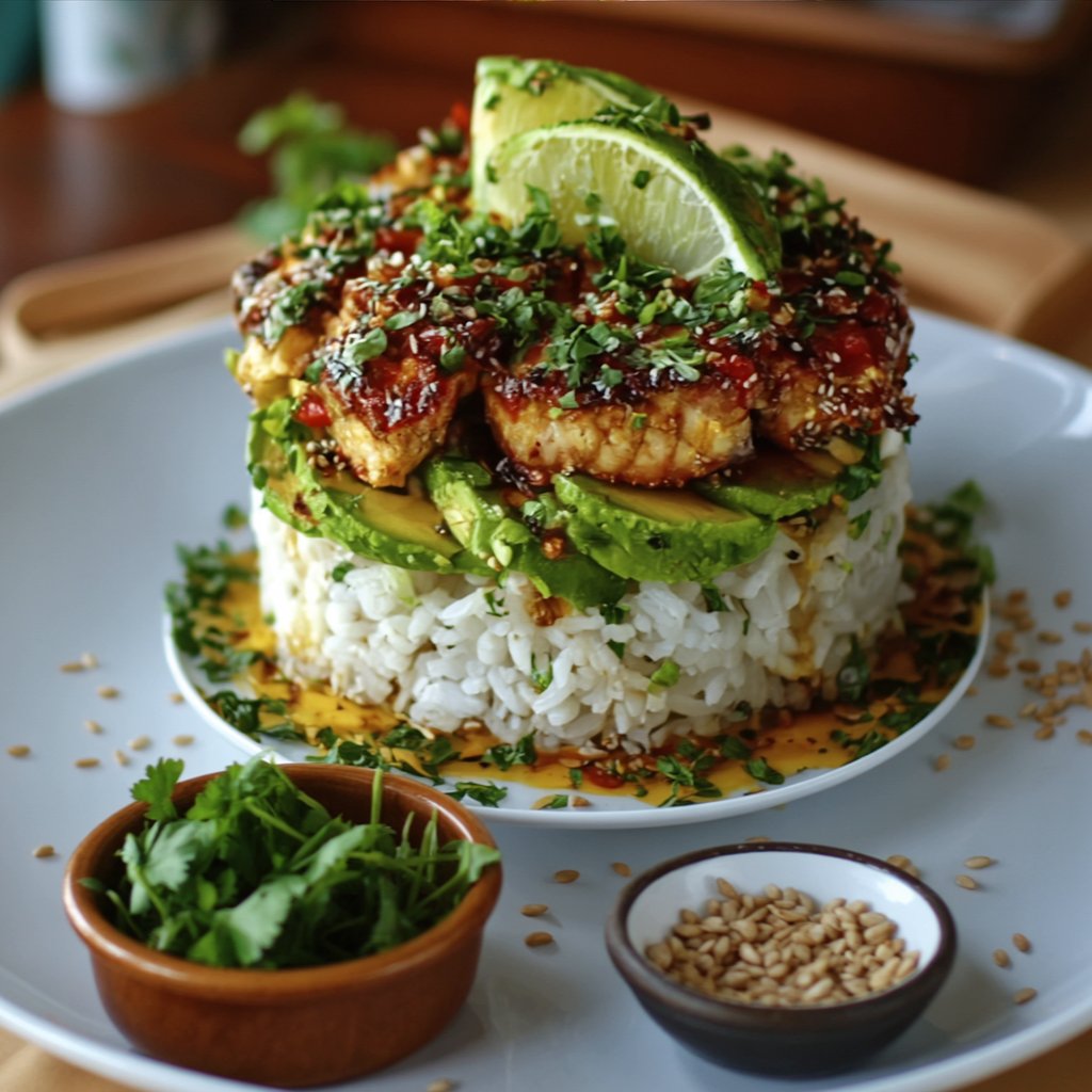 This Honey Lime Chicken and Avocado Rice Stack is the perfect way to elevate your weeknight dinner game. It’s a dish that proves healthy food can be incredibly flavourful, beautiful, and fast. The sweet and tangy glaze on the tender chicken, paired with the creamy avocado and fragrant rice, creates a harmony of textures and tastes that is truly unforgettable. It’s a simple recipe that delivers a “wow” factor every time.