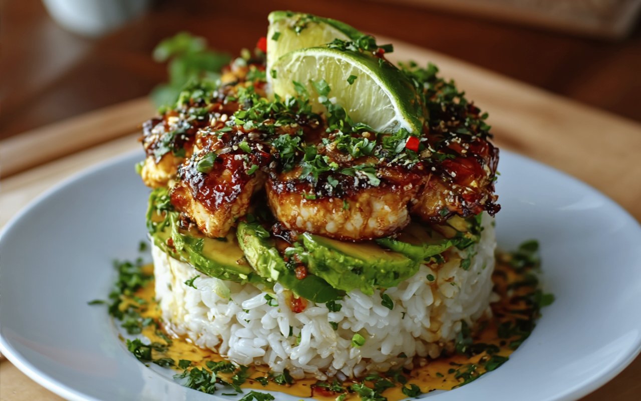 This Honey Lime Chicken and Avocado Rice Stack recipe is here to break the routine and bring a burst of fresh flavor to your table. It features juicy, caramelized honey lime chicken layered over creamy avocado and fluffy jasmine rice. The “stack” presentation is not only fun but ridiculously easy to do, turning a simple dinner into an impressive culinary creation. This is the kind of meal that’s light yet satisfying, and packed with flavours that will make your taste buds sing.