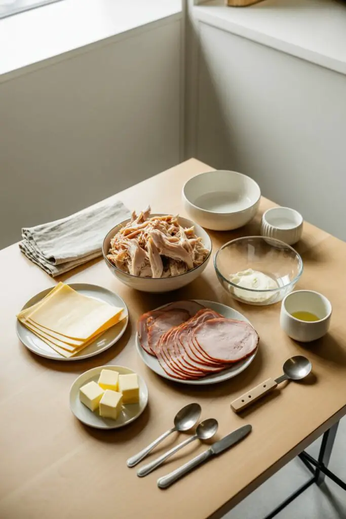 - Layer the Casserole Ingredients: Spread the shredded chicken evenly across the bottom of your prepared casserole dish. Arrange the slices of ham over the chicken. Pour the prepared creamy Dijon sauce evenly over the ham and chicken layer.