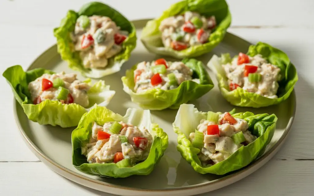 The final step is the most rewarding. Scoop your freshly made chicken salad into crisp butterhead lettuce cups for the ultimate low-carb wrap. The soft, tender lettuce is the perfect vehicle for the rich and flavorful salad, providing a refreshing crunch without any extra carbs.