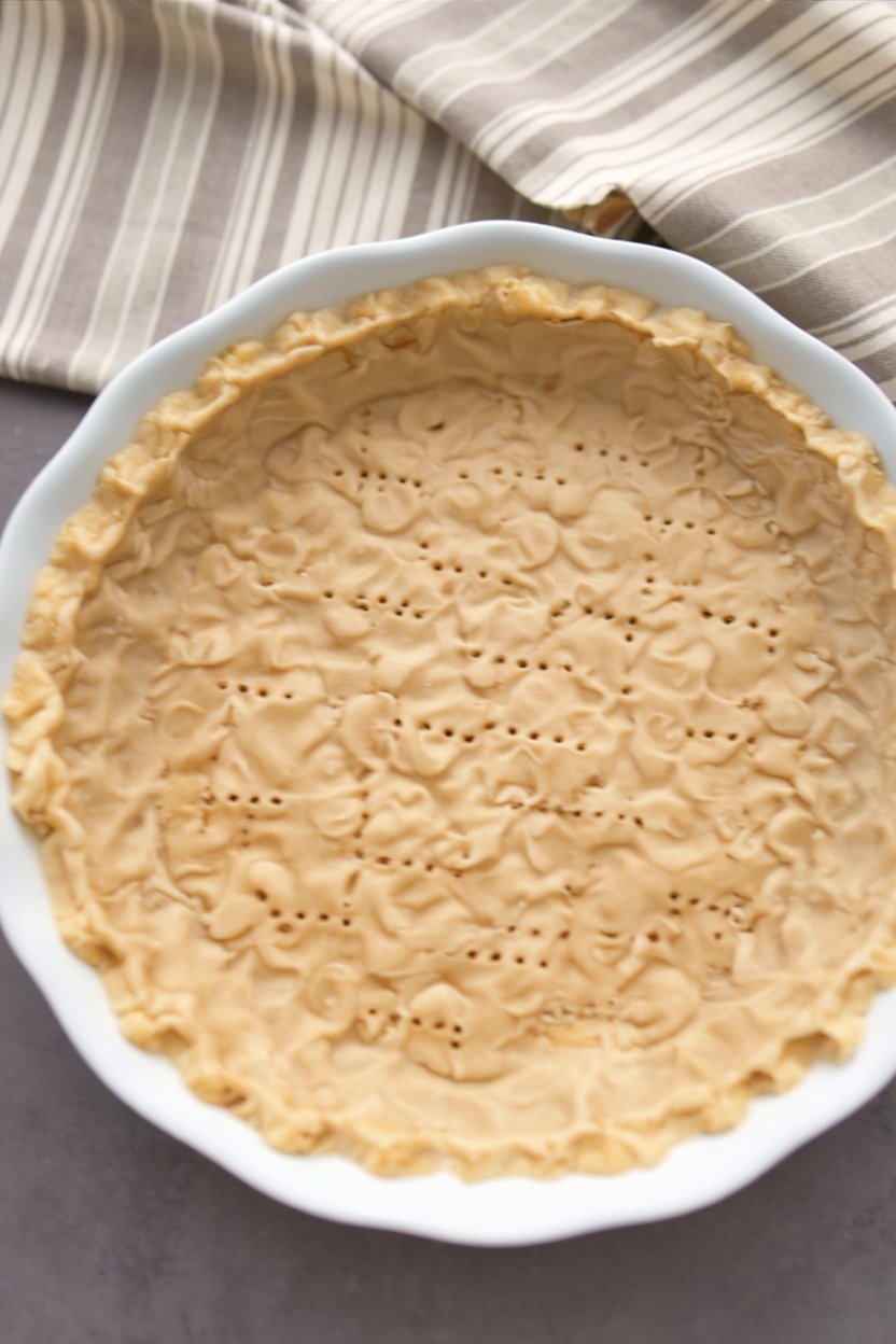 - Prick: Use a fork to prick holes all over the bottom of the crust. This prevents air bubbles from forming while baking.