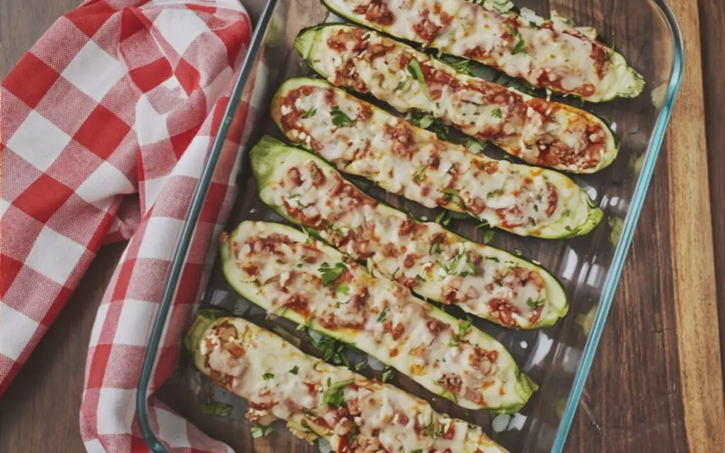 - Layer the boats: Arrange zucchini in a baking dish. Spread a layer of ricotta into each boat. Spoon beef sauce on top, then sprinkle evenly with mozzarella.