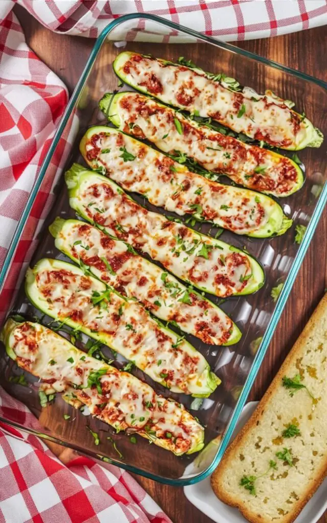Once baked, carefully remove the zucchini boats from the oven. For a final touch of freshness and color, garnish with freshly chopped parsley just before serving. Serve immediately while hot and cheesy!