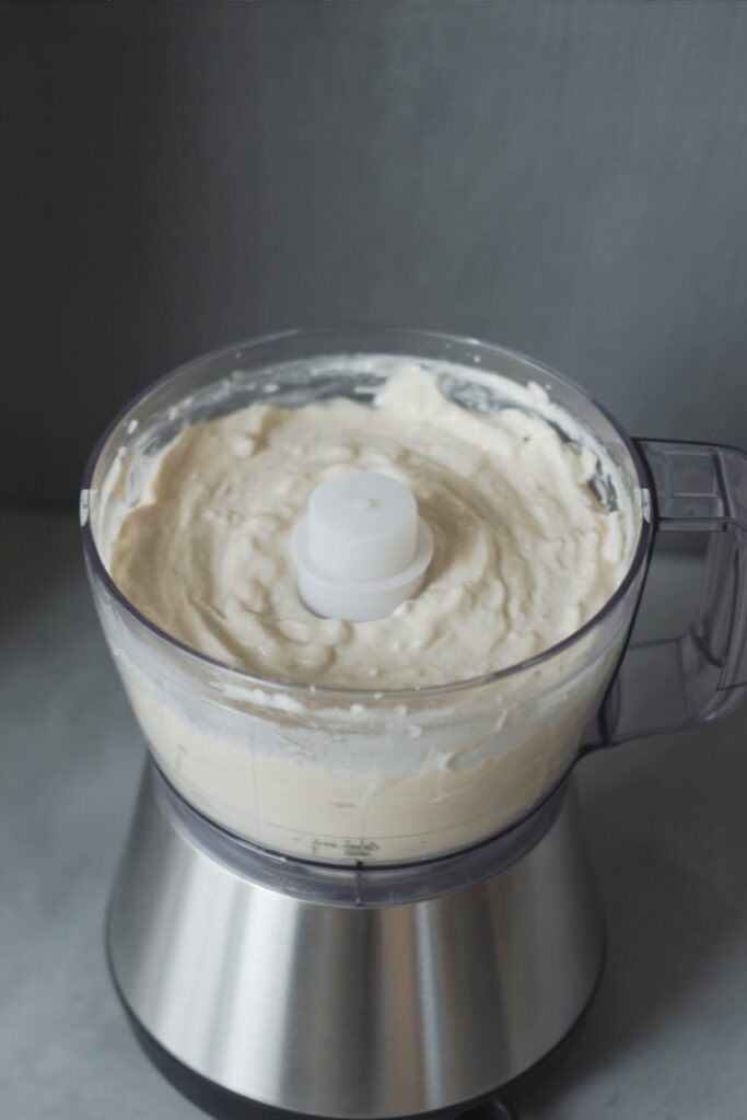 In a clean bowl (you can reuse your food processor bowl if it has a whisk attachment), whip the cold heavy cream until stiff peaks form. In a separate bowl, gently fold the whipped cream into the well-drained crushed pineapple until just combined. Be careful not to overmix, as you want to keep the topping light and airy.