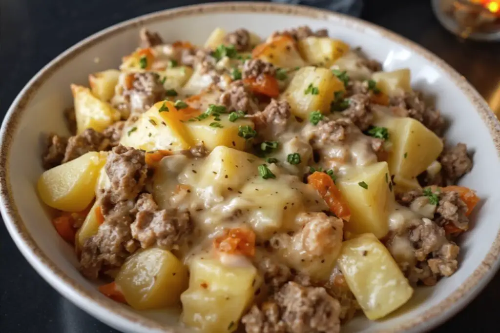 You’ll love this cozy, budget-friendly skillet dinner made with ground meat, diced potatoes, and a quick creamy sauce. It all comes together in one pan in about 30 minutes—perfect for busy weeknights. Customize it with cheese, herbs, or frozen veggies for an easy family favorite.