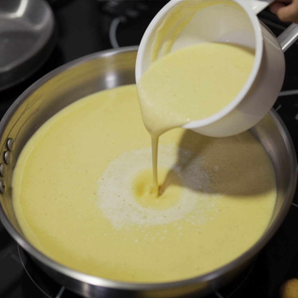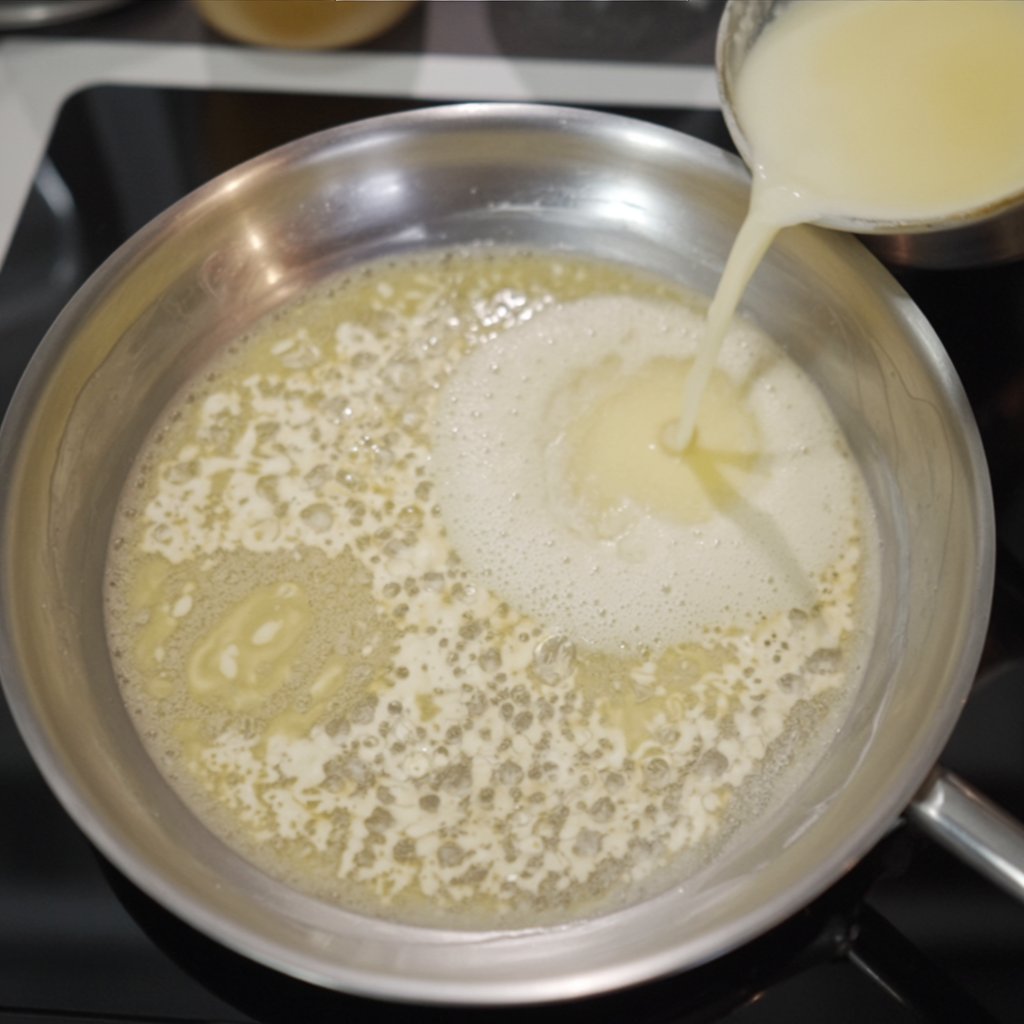 - Create the Cooking Liquid: Pour in the chicken broth and any optional seasonings you are using. Slowly pour in the milk while stirring. Bring this mixture to a gentle boil over medium-high heat.