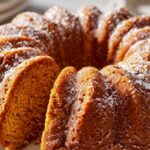 This cozy Pumpkin Bundt Cake is tender, warmly spiced, and finished with a snowy dusting of powdered sugar. It’s an impressive yet easy fall dessert that slices beautifully for gatherings.