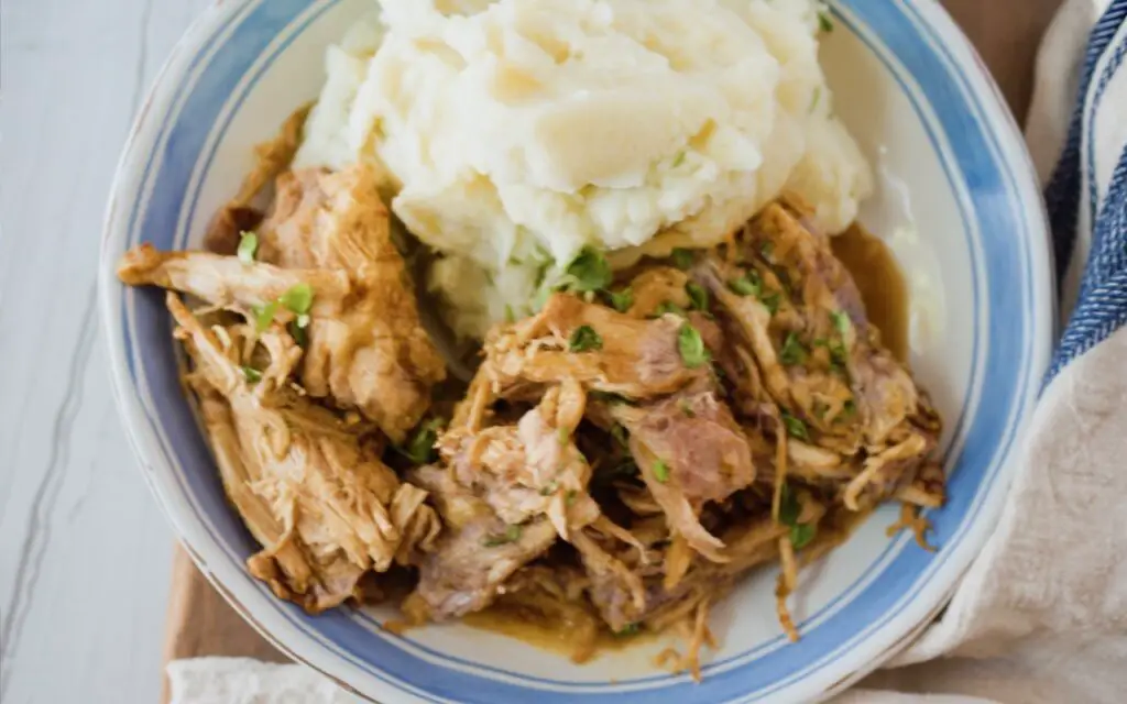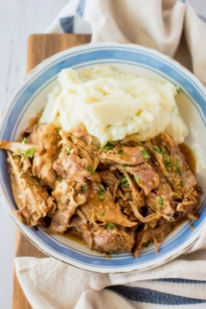 For thicker gravy, remove 1 cup of cooking liquid and whisk with 1 tbsp cornstarch; simmer until glossy, then fold back into the shredded pork. Great over mashed potatoes, rice, or on toasted rolls.