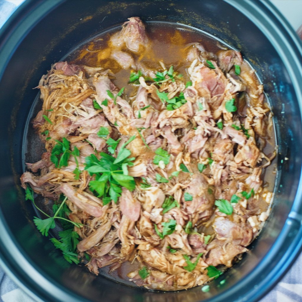 - Shred & Serve: Shred the pork in the slow cooker with two forks, stirring to coat in the savory juices. Serve hot.