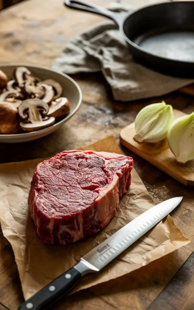 What You’ll Need: Ingredients. Simple, flavor-packed pantry staples transform round steak into melt-in-your-mouth comfort food with a creamy mushroom-onion gravy. Hands-off slow cooker method with a quick finish.