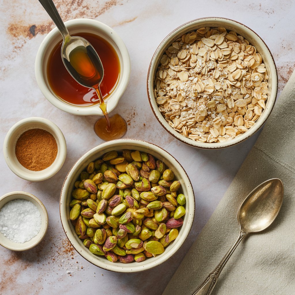 Preheat your oven to 350∘F (175∘C). While the oven heats, prepare the unique topping. Roughly chop the roasted pistachios—you want varied, chunky pieces, not dust. In a separate bowl, lightly process the rolled oats. Pro Tip: Pulse them in a food processor 2-3 times or place them in a bag and lightly crush them with a rolling pin. The goal is to break them up slightly, not turn them into oat flour.