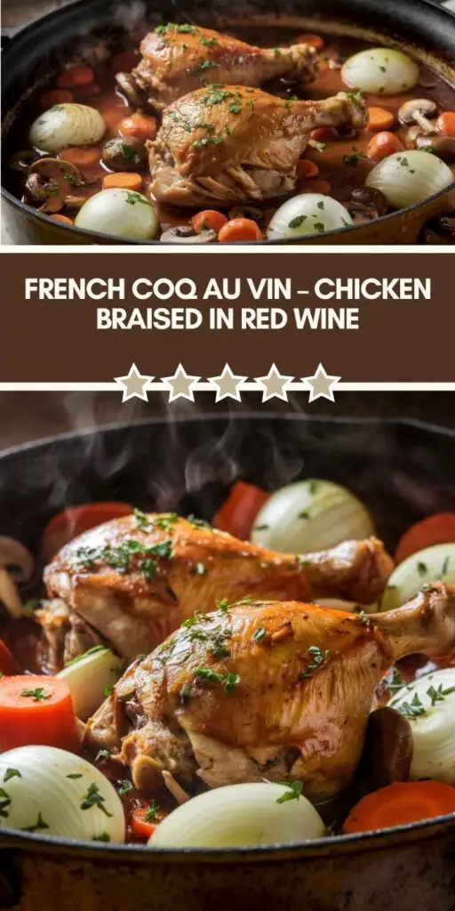 Enjoy crafting this classic dish and let the slow-cooked magic of red wine braised chicken transform your meal into a memorable celebration of French culinary artistry. When you’re ready to explore more recipes, let me know—and bon appétit!