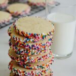 Place your colored sprinkles or nonpareils in shallow bowls. Shape the dough into 1-inch balls (a small cookie scoop is helpful here for uniformity). Dip the tops of the balls into the sprinkles, pressing gently to adhere.