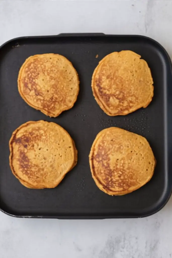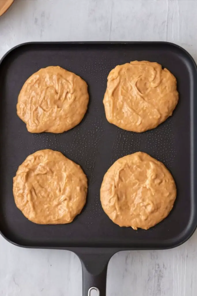 - Cook: Heat a nonstick skillet or griddle over medium heat and melt a little butter. Pour ⅓ cup batter per pancake. Cook 2–4 minutes, until bubbles form and edges look set. Flip and cook 2–3 minutes more, until golden and cooked through.