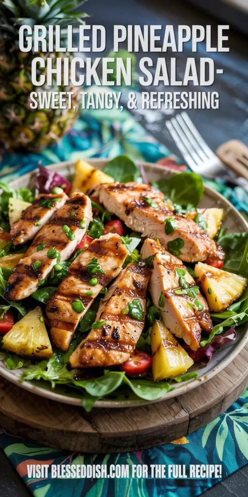This Grilled Pineapple Chicken Salad brings a burst of tropical flavor to your table while keeping things light, protein‑packed, and vibrant. It’s perfect for summer meals, meal prep, or any time you want a colorful, satisfying dish. Ready to grill and chill? Visit BlessedDish.com for more inspired recipes and share your creation on social media with #BlessedDish. Don’t forget to leave a ★★★★★ review and subscribe for fresh, flavorful recipes delivered straight to your inbox!