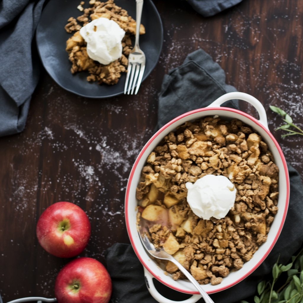 What You’ll Need: Ingredients. Whole grains, natural sweeteners, and fresh apples come together for a cozy, nourishing apple crisp with a crunchy pecan-oat crumble and maple-kissed filling.