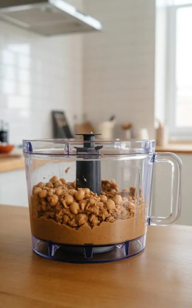 - Action: Process on high until the mixture is completely smooth and creamy. You may need to stop and scrape down the sides of the bowl with a spatula once or twice to ensure no whole chickpeas or chunks of dates remain. The texture should resemble a thick hummus or batter.