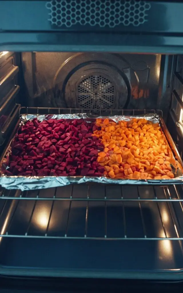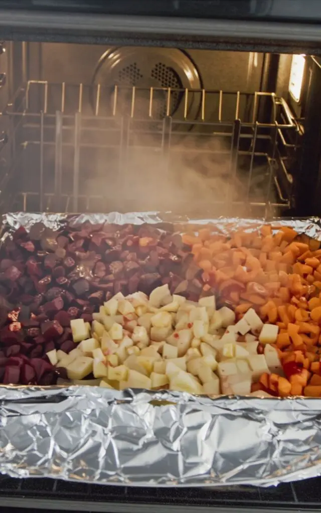 - Roast the Vegetables: While the beef simmers, preheat the oven to (). On a large roasting pan, toss the beets and carrots with the remaining 1 tsp of oil. Roast for 15 minutes. Add the cubed potatoes to the pan, toss, and roast for another 15 minutes until tender.