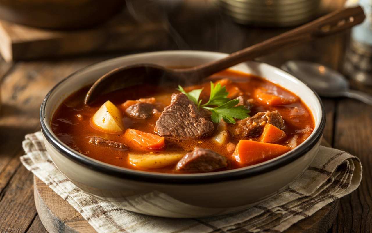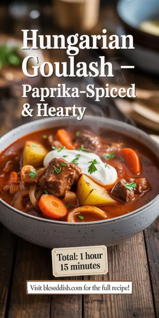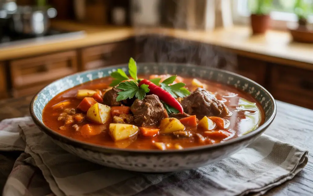 Enjoy this robust, paprika-infused Hungarian goulash—a true celebration of Central European comfort!