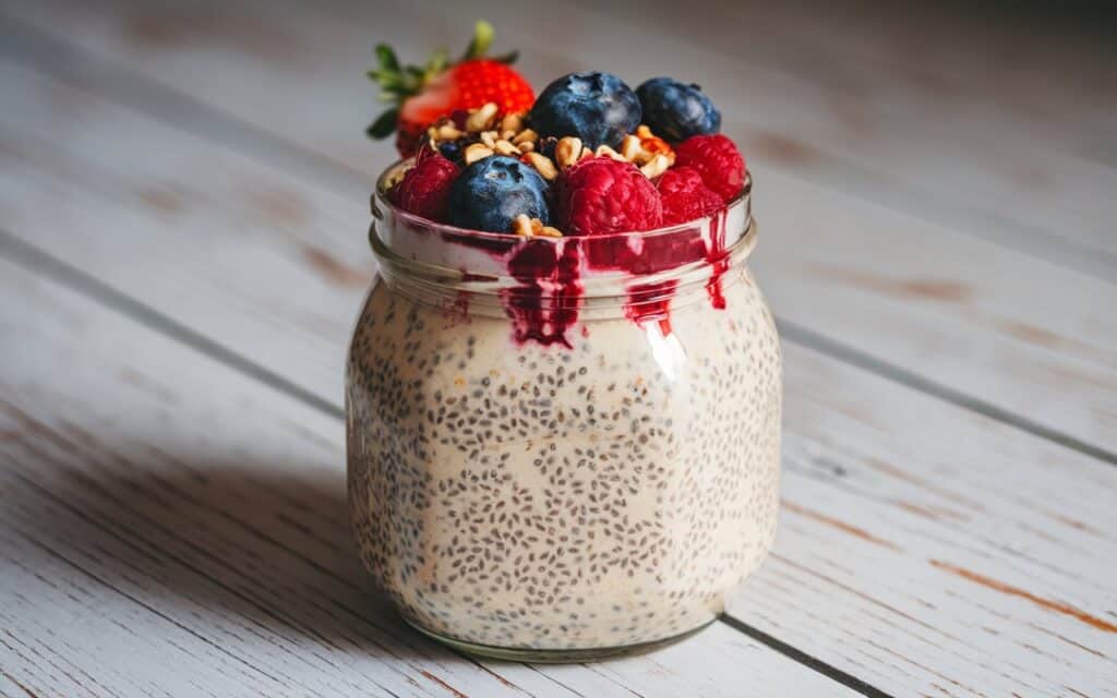 - Cover the bowl or jar tightly and refrigerate for at least 6–8 hours (overnight) to allow the oats and chia seeds to absorb the liquid and soften.