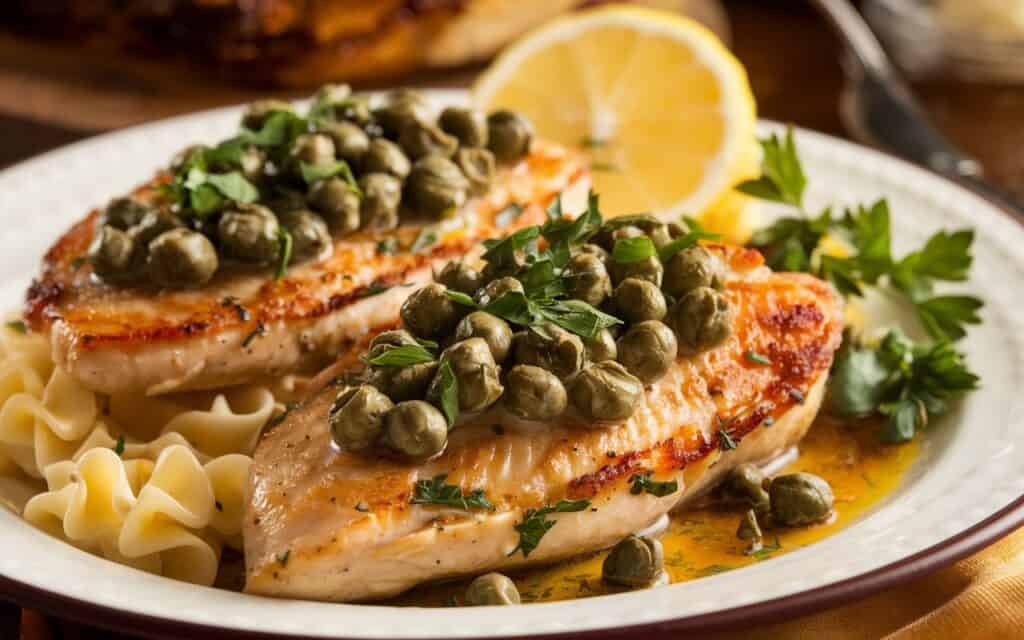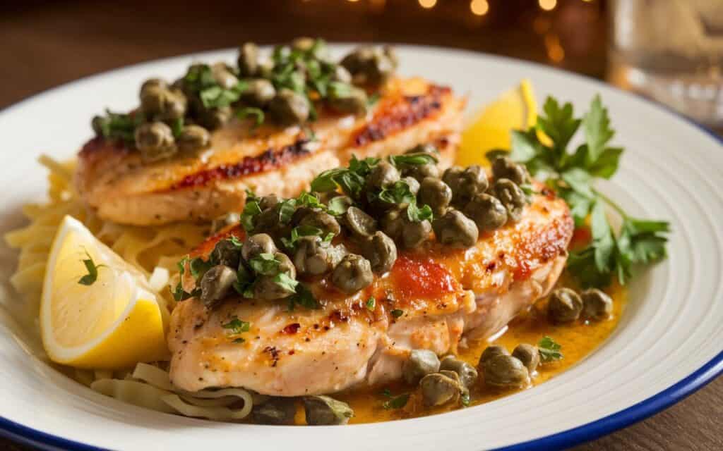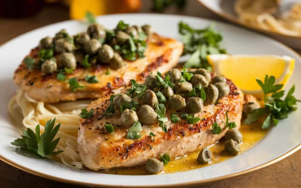 A bright and tangy chicken dish that features tender, pan-seared chicken cutlets in a lemony caper sauce. This international favorite balances the zest of fresh lemon with savory capers and a hint of white wine, making it a perfect star on any dinner table.