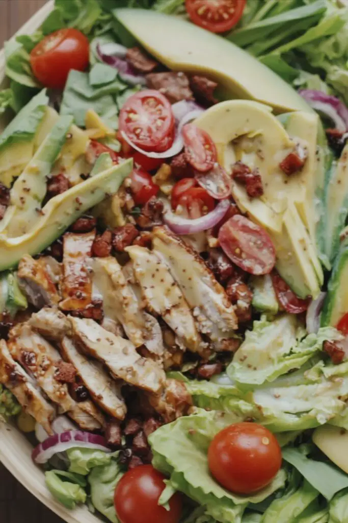 Juicy honey‑mustard chicken, smoky bacon, crisp Romaine, and creamy avocado—tossed in a scratch honey‑mustard vinaigrette that doubles as a marinade. Comfort meets clean eating in one bowl.