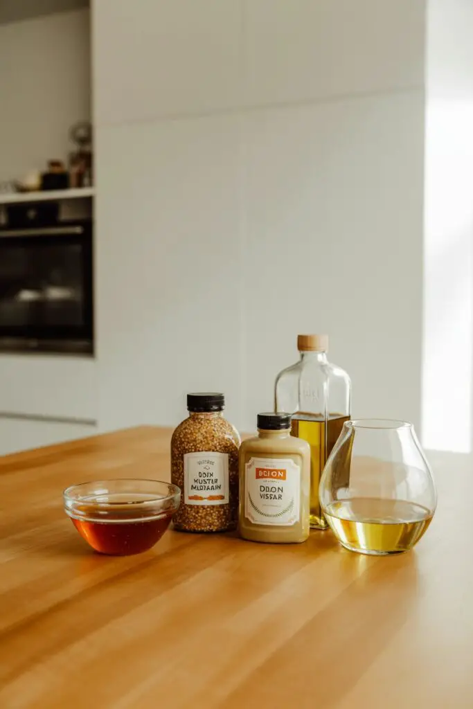| Dijon Mustard | 2 tablespoons | Smooth and mild for emulsification |