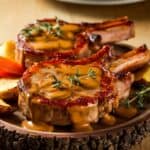 Before serving, sprinkle freshly chopped thyme or rosemary over the pork chops. This not only adds a burst of color but also enhances the dish’s aromatic appeal. - Plating and Serving: