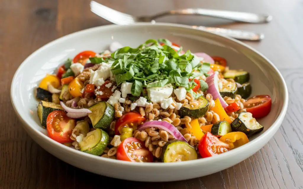 This Italian Farro Salad with Roasted Vegetables & Vinaigrette proves that wholesome dishes can be vibrant, satisfying, and quick to prepare. By balancing nutty farro, colorful veggies, and a tangy homemade red-wine vinaigrette, you’re creating a versatile recipe perfect for weeknight dinners, meal prep, or entertaining. Ready to elevate your grain-salad game? Whip up this farro veggie bowl, share your experience in the comments, and explore more roasted vegetable farro recipes on our blog!