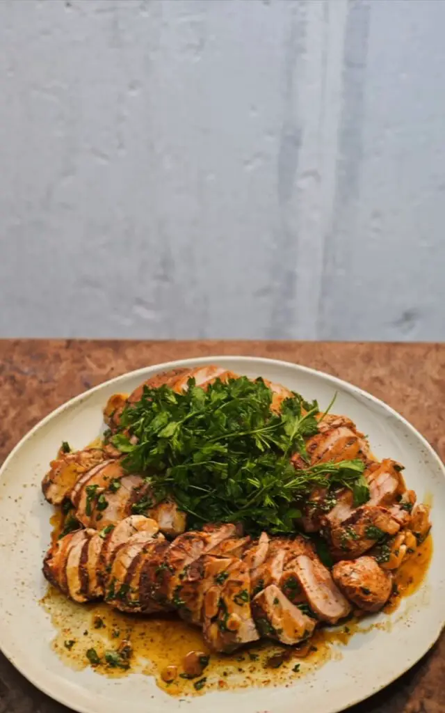 - Slice & serve. Cut pork into medallions and spoon sauce over. Garnish with extra parsley and flaky salt if desired.