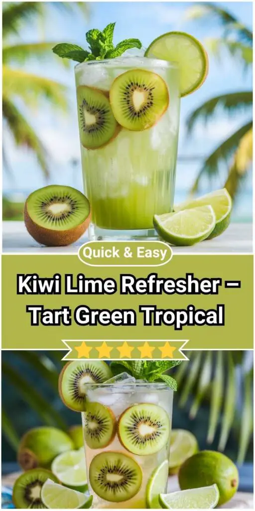 Kiwi Lime Refresher – Tart Green Tropical Drink merges the understated sweetness of kiwi with the bold tang of lime, forging a thirst-quenching beverage that stands apart from standard fruit punches or lemonades. Whether blended silky smooth or left slightly pulpy for a rustic, fiber-rich texture, the bright green hue captures the eye as effectively as the flavor captures the palate. Serve it with a simple garnish or escalate it into a mocktail or cocktail with herbs and spirits.