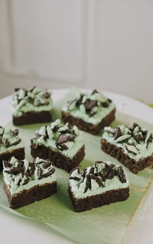 - Frost & finish: Lift cooled brownie slab onto a board. Spread frosting to edges in swoops, then scatter chopped mint cream biscuits on top and press lightly to adhere.