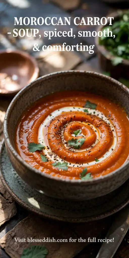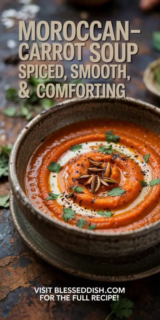 This Moroccan Carrot Soup brings together the sweetness of roasted carrots, the warmth of North African spices, and the brightness of fresh orange for a bowl that’s as beautiful as it is delicious. Perfect for cozy nights, meal prep, or elegant entertaining, it’s sure to become a family favorite. Ready to make it tonight? Head over to BlessedDish.com for more vibrant, globally inspired recipes. If you give this one a try, please leave a ★★★★★ review below, share your photos on Instagram with #BlessedDish, and subscribe at BlessedDish.com for fresh recipe inspiration delivered straight to your inbox. Enjoy every spoonful!