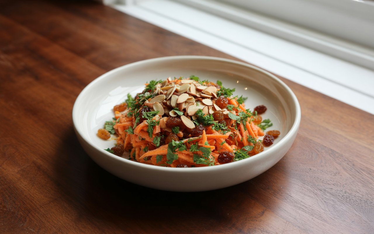 Sensory note: The bright orange of the carrots, the jewel-like raisins, and emerald mint create a feast for the eyes even before the first crunchy bite.