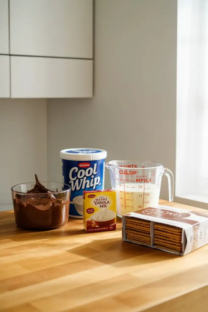 Layers of graham crackers, a fluffy vanilla pudding–Cool Whip filling, and a rich chocolate frosting top. No oven needed and always a crowd‑pleaser!